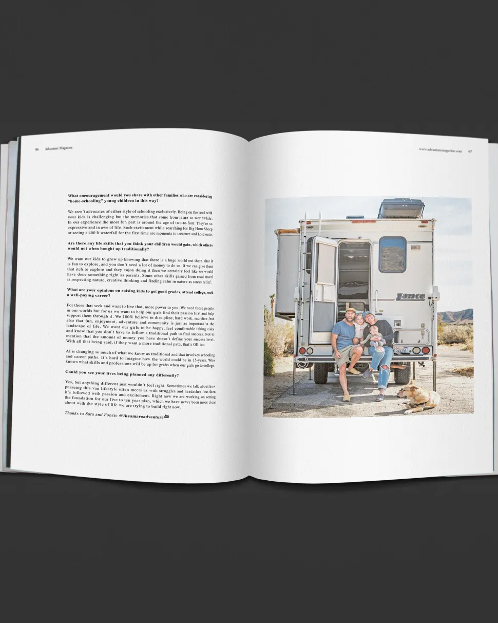 Advanture Magazine issue 11. Into the wilds. A 100-page collectible coffee table vanlife journal, printed on uncoated FSC-certified paper. Enjoy inspiring stories from the road from those who love to explore and have adventures. Features in this issue: learning on the job in the Arctic, newcomers’ first campervan trip, motorbike camping, spotlight on northern Argentina, the face behind Campers and Coffee plus more.