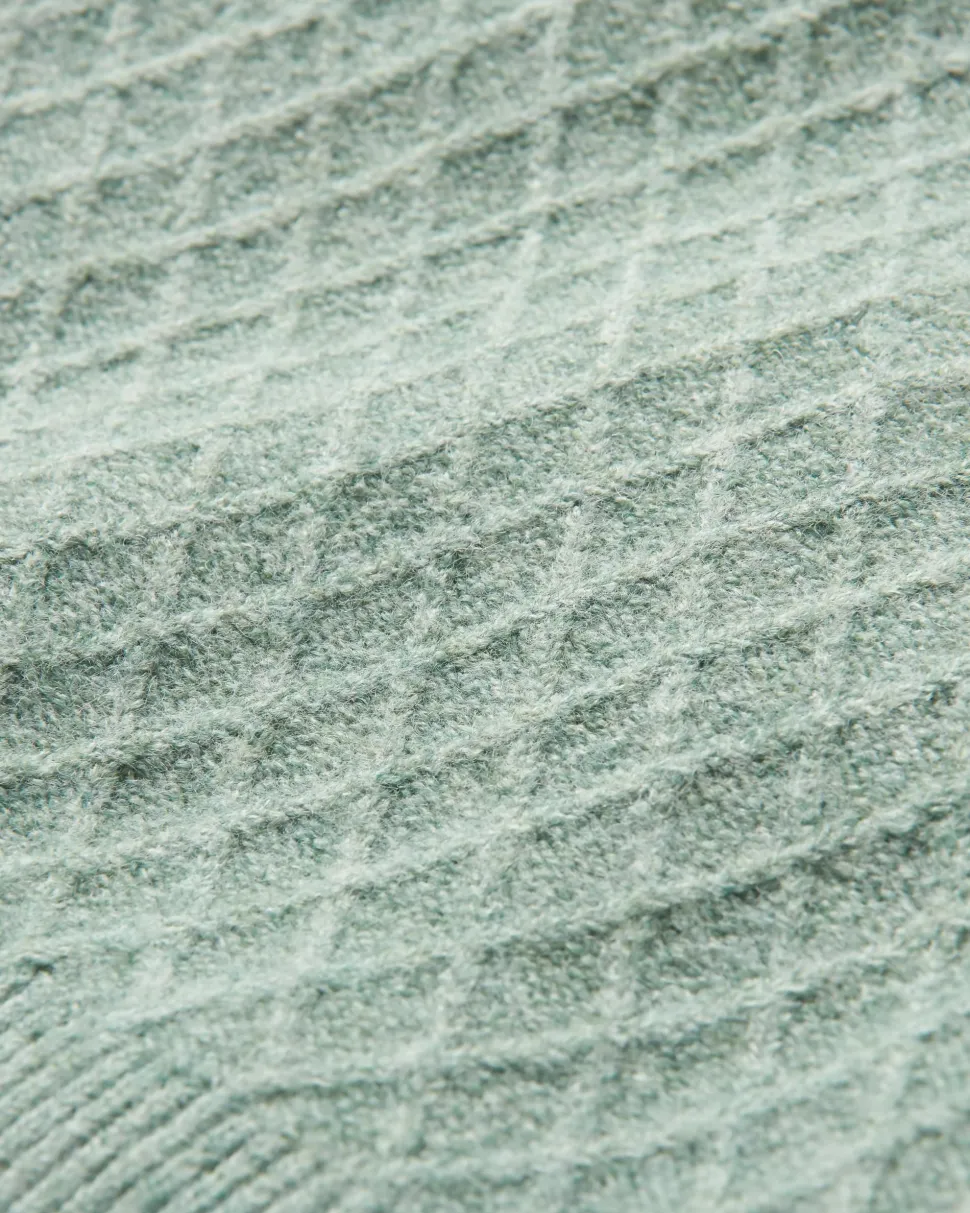 - Mid-weight Mock neck jumper with a jacquard cable knit.