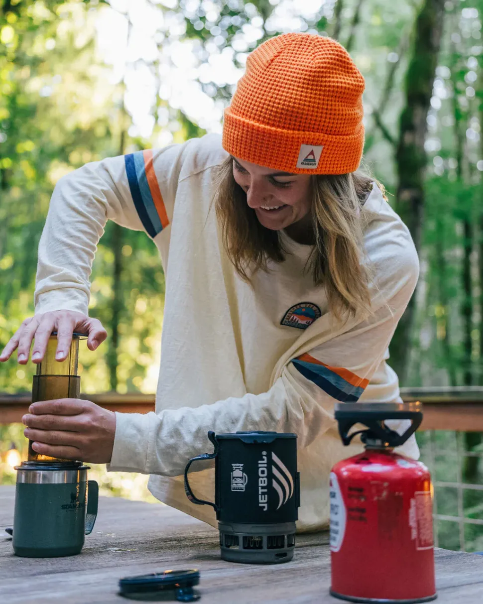 - Woven retro-style patch on chest.