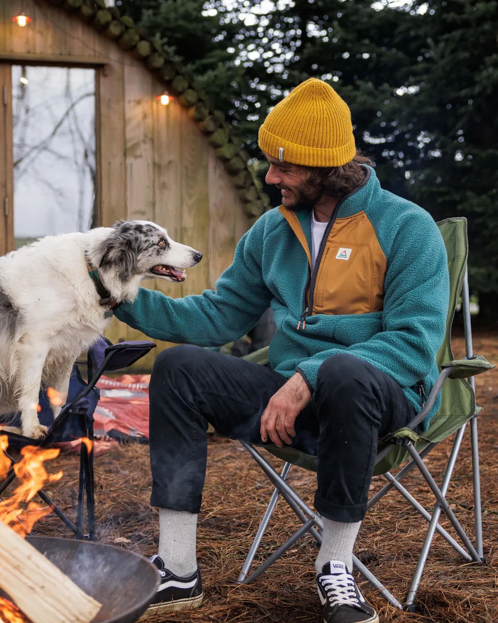 - Mid-weight zip-up fleece with a recycled ripstop top panel.
