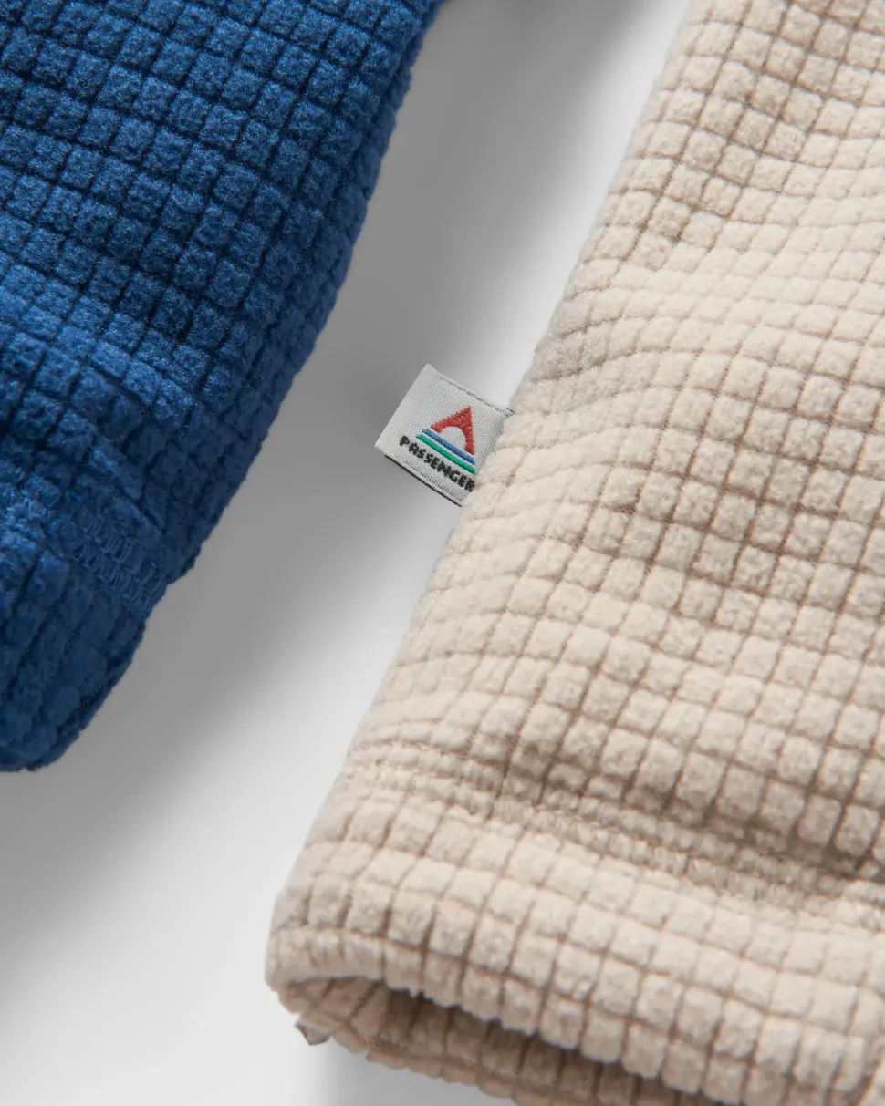 - Grid texture active fleece in recycled fabric blend.
