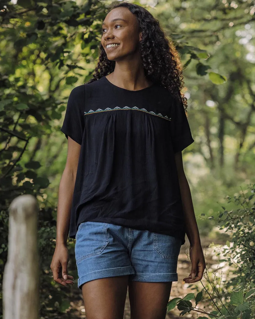 Made in super comfy Eco Viscose the Petal Top features front embroidery detail and easy wearing relaxed fit. A subtle piece made for everyday wear.